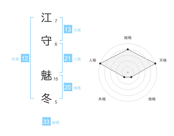 江守 魅冬さんを姓名の画数から五運を鑑定