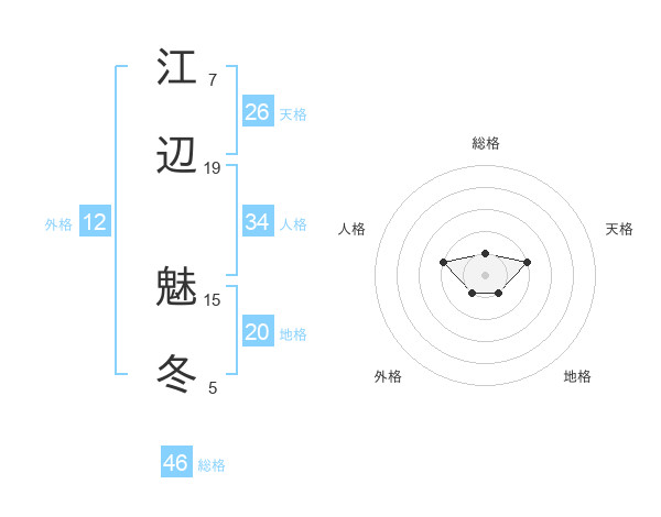江辺 魅冬さんの総格は46画の1点!