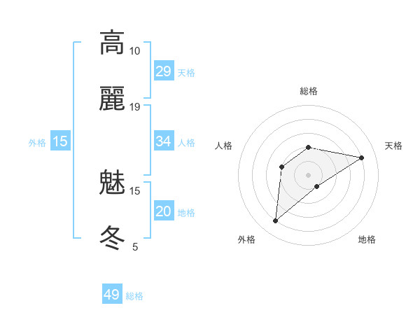 高麗 魅冬さんの総格は49画の2点!