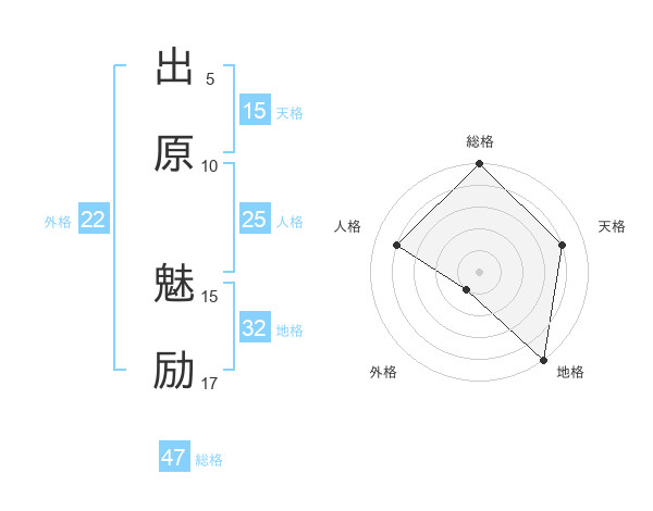 出原 魅励さんの総格は47画の5点!