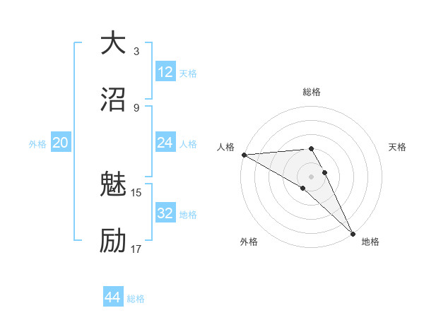 大沼 魅励さんの総格は44画の2点!