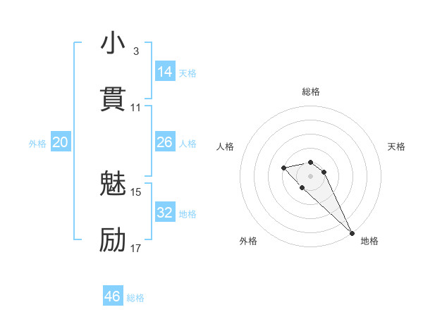 小貫 魅励さんを姓名の画数から五運を鑑定
