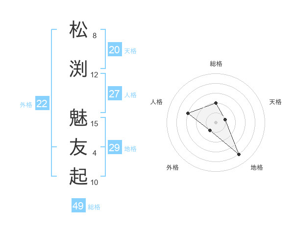 松渕 魅友起さんを姓名の画数から五運を鑑定
