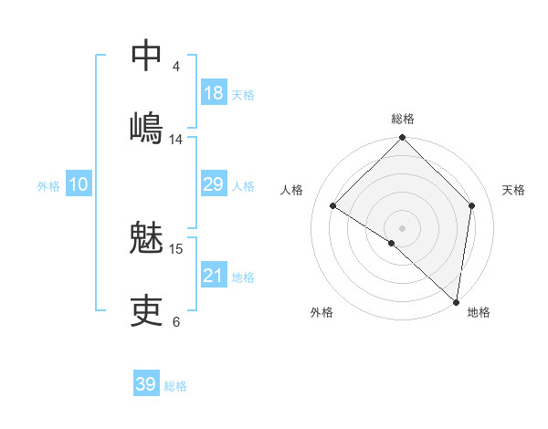 中嶋 魅吏さんを姓名の画数から五運を鑑定