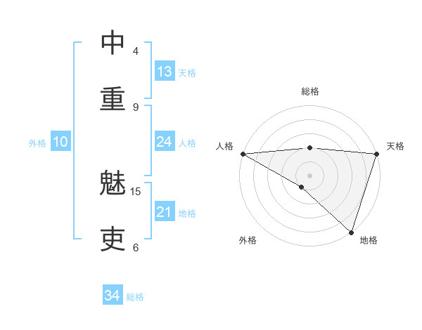 中重 魅吏さんの天格は13画の5点!