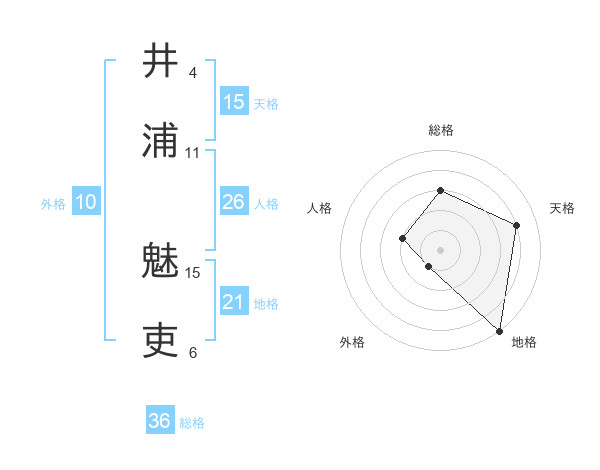 井浦 魅吏さんを姓名の画数から五運を鑑定