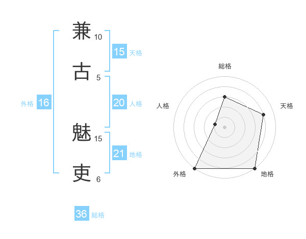 兼古 魅吏さんの外格は16画の5点!