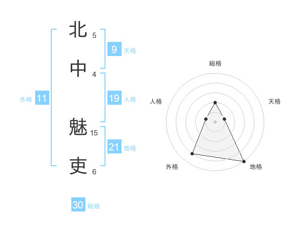 北中 魅吏さんの外格は11画の4点!