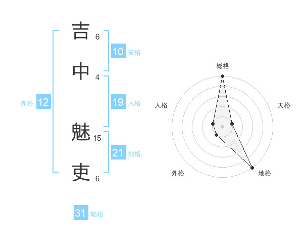 吉中 魅吏さんの総格は31画の5点!