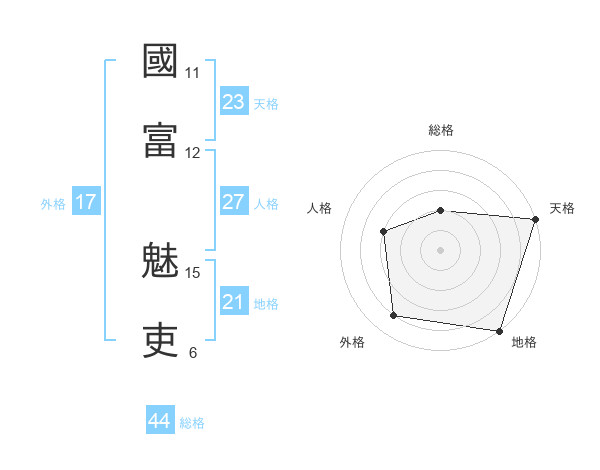 國富 魅吏さんの総格は44画の2点!