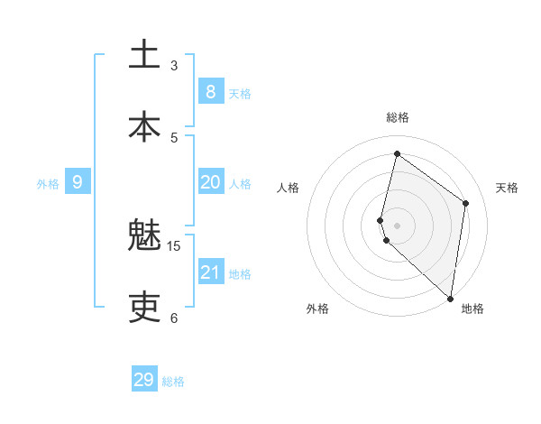 土本 魅吏さんの総格は29画の4点!