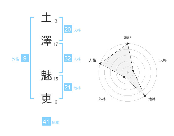 土澤 魅吏さんの総格は41画の5点!