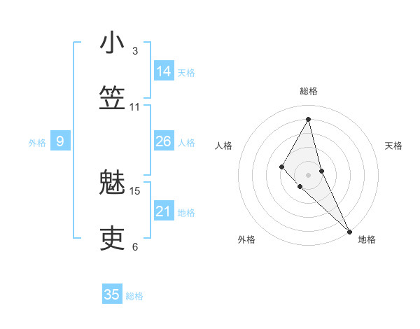 小笠 魅吏さんの総格は35画の4点!