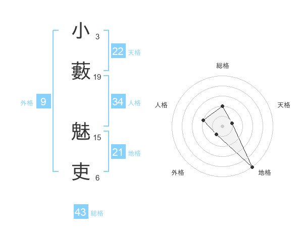 小藪 魅吏さんの天格は22画の1点!