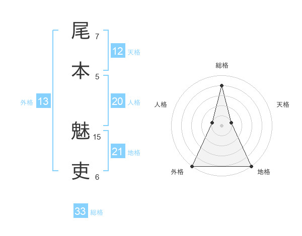 尾本 魅吏さんの外格は13画の5点!
