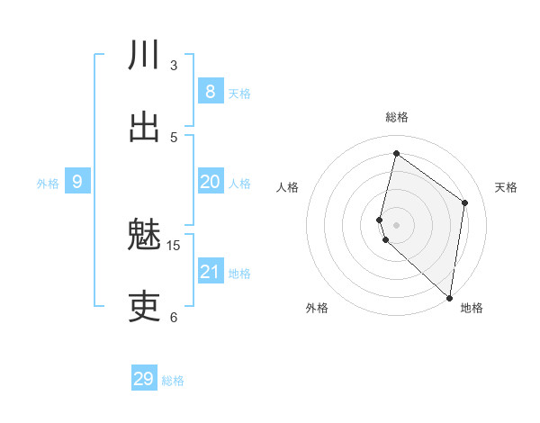 川出 魅吏さんの天格は8画の4点!