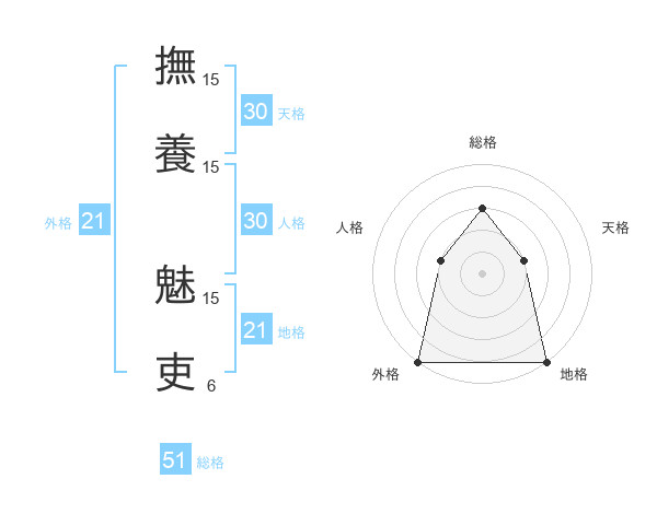撫養 魅吏さんの総格は51画の3点!