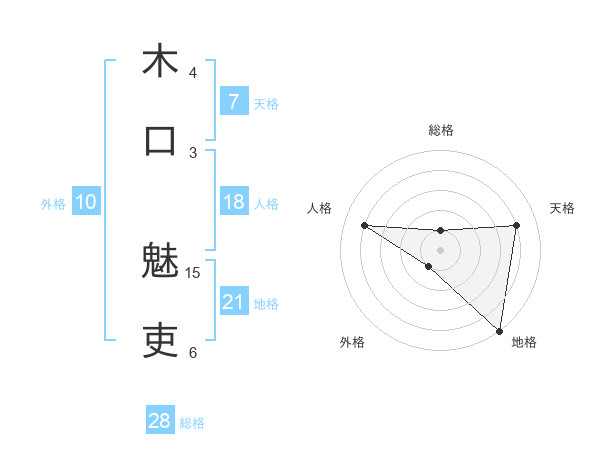 木口 魅吏さんの総格は28画の1点!