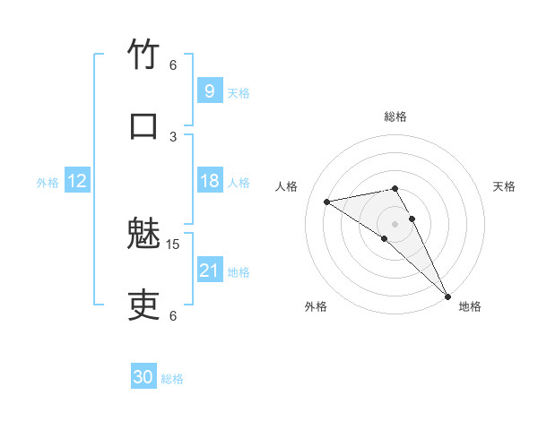竹口 魅吏さんの地格は21画の5点!