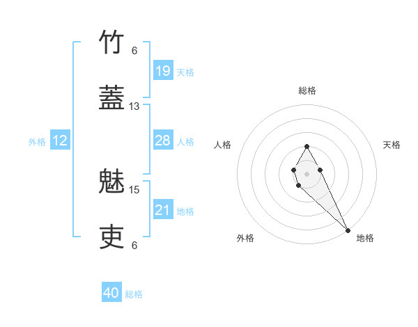 竹蓋 魅吏さんの天格は19画の1点!