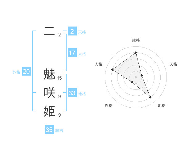 二 魅咲姫さんの総格は35画の4点!