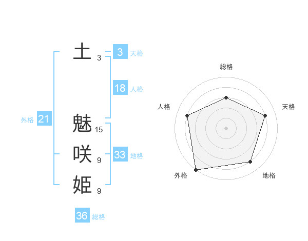 土 魅咲姫さんを姓名の画数から五運を鑑定