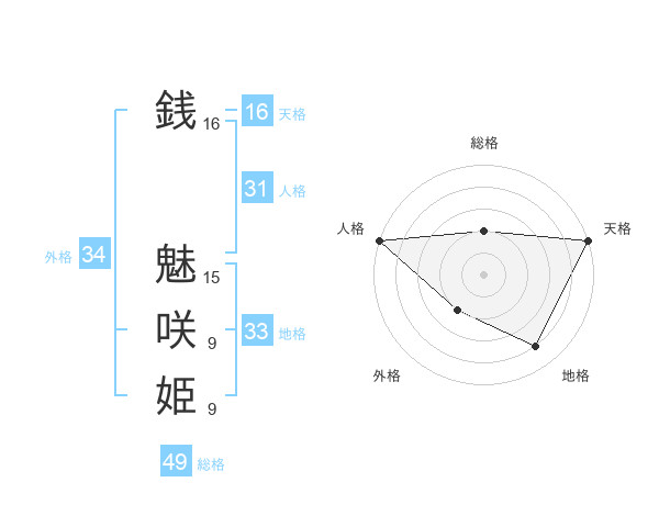 銭 魅咲姫さんの総格は49画の2点!