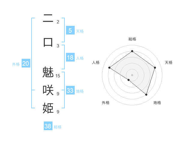 二口 魅咲姫さんを姓名の画数から五運を鑑定