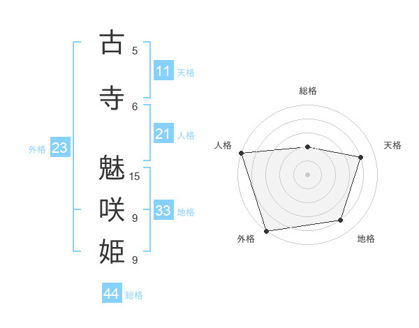 古寺 魅咲姫さんの外格は23画の5点!