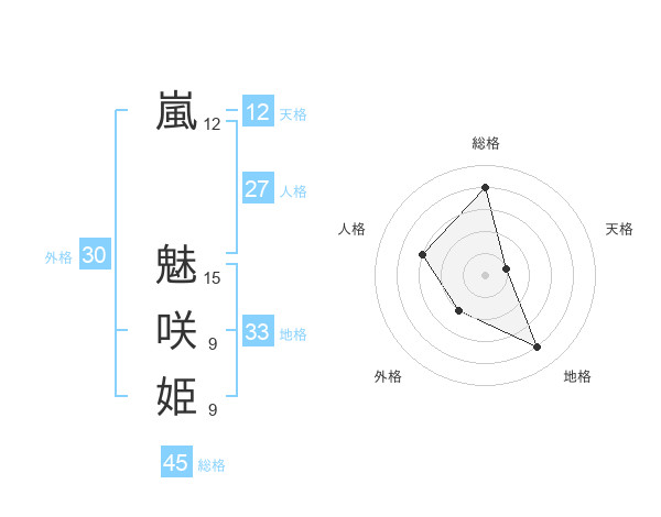 嵐 魅咲姫さんを姓名の画数から五運を鑑定