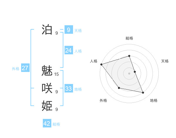 泊 魅咲姫さんを姓名の画数から五運を鑑定