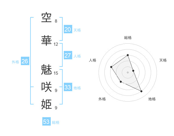 空華 魅咲姫さんを姓名の画数から五運を鑑定
