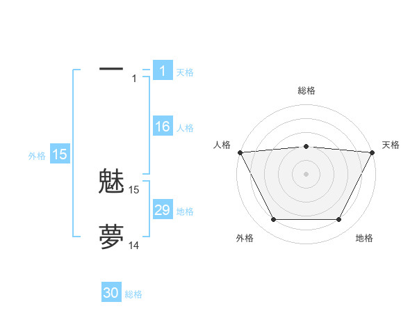 一 魅夢さんの天格は1画の5点!