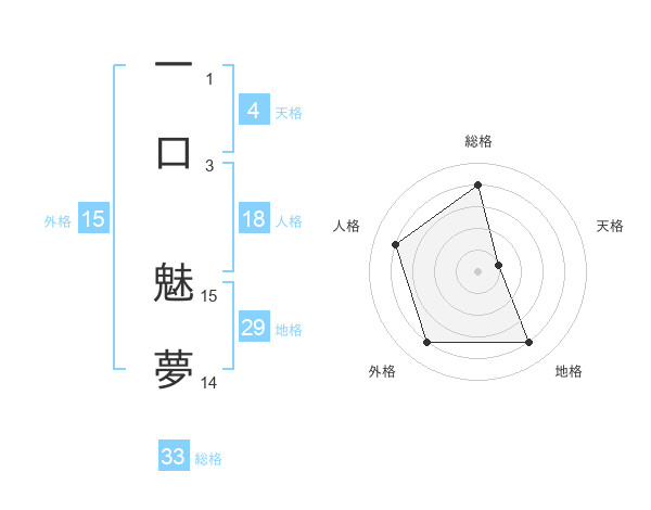 一口 魅夢さんの総格は33画の4点!