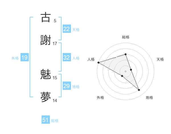 古謝 魅夢さんの総格は51画の3点!