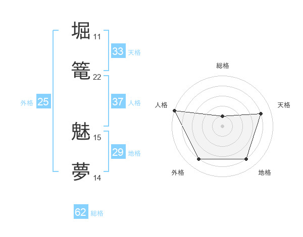 堀篭 魅夢さんの総格は62画の1点!