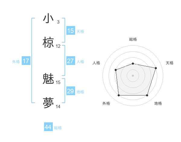 小椋 魅夢さんを姓名の画数から五運を鑑定