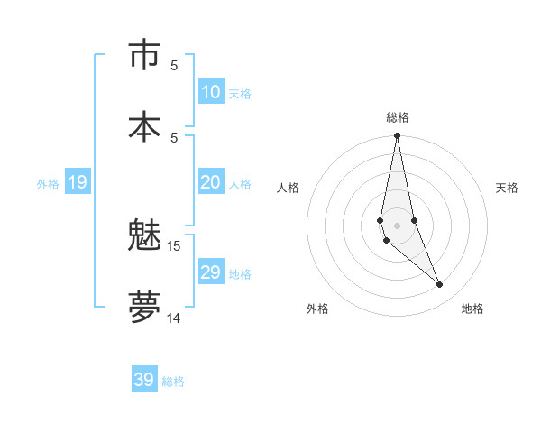 市本 魅夢さんの総格は39画の5点!