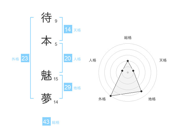 待本 魅夢さんを姓名の画数から五運を鑑定