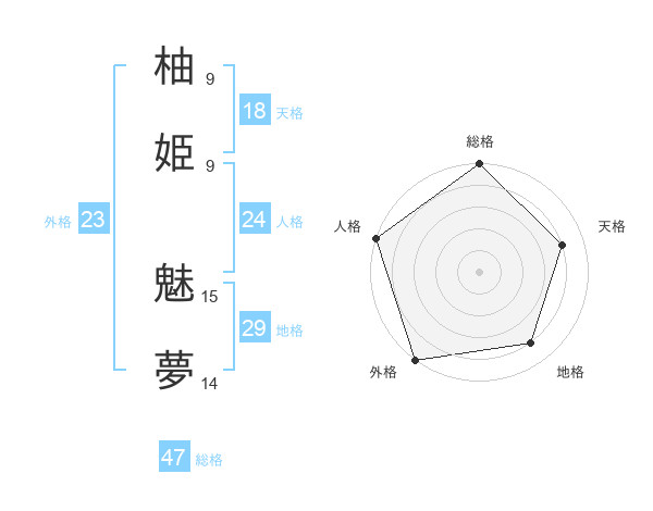 柚姫 魅夢さんを姓名の画数から五運を鑑定