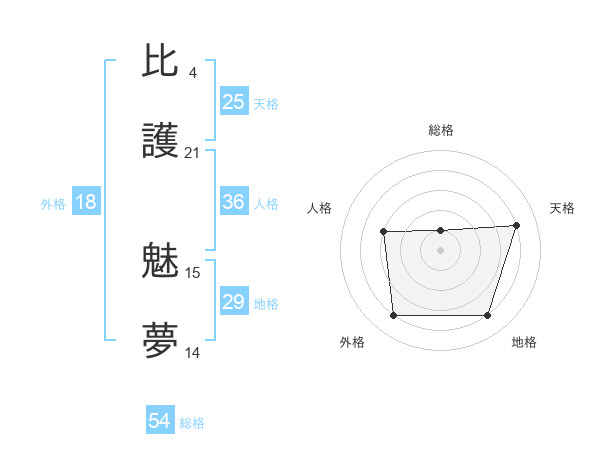 比護 魅夢さんの総格は54画の1点!