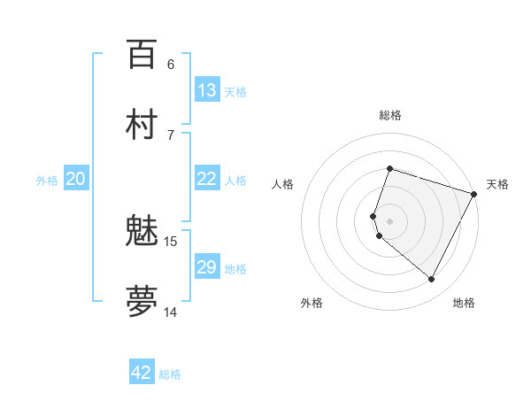 百村 魅夢さんを姓名の画数から五運を鑑定