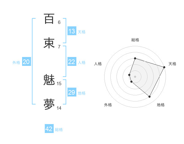 百束 魅夢さんの天格は13画の5点!