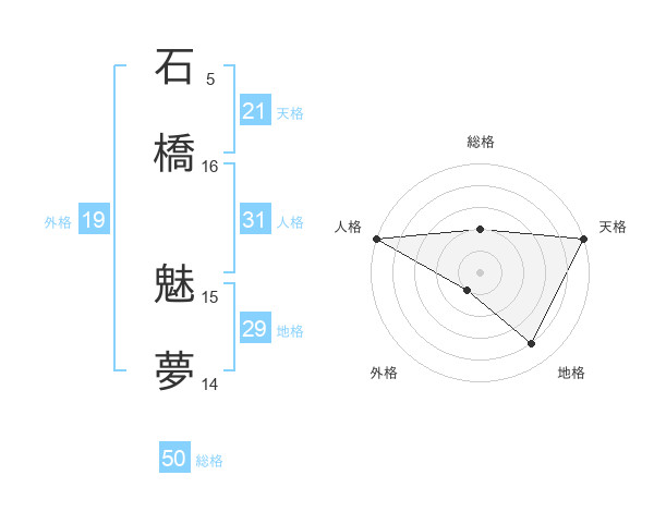 石橋 魅夢さんの総格は50画の2点!