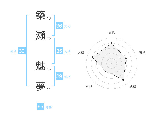 築瀬 魅夢さんの総格は65画の4点!