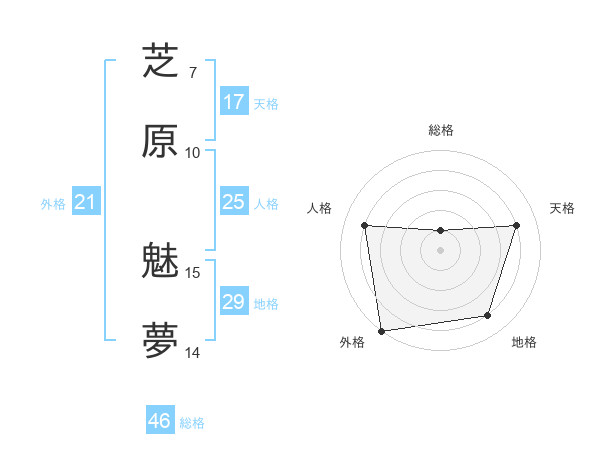 芝原 魅夢さんの天格は17画の4点!