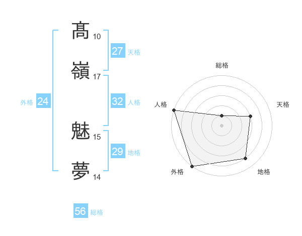 髙嶺 魅夢さんの外格は24画の5点!