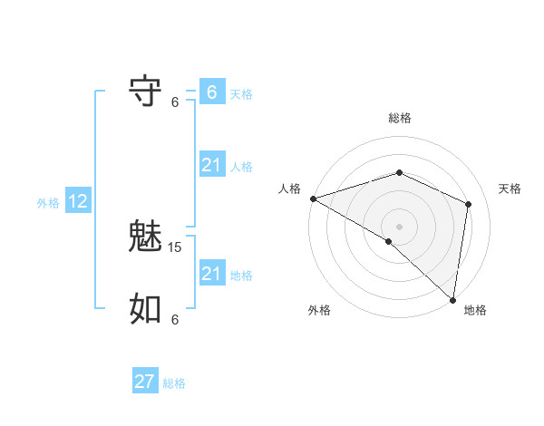 守 魅如さんの総格は27画の3点!