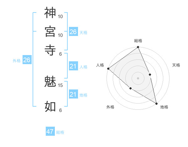神宮寺 魅如さんを姓名の画数から五運を鑑定