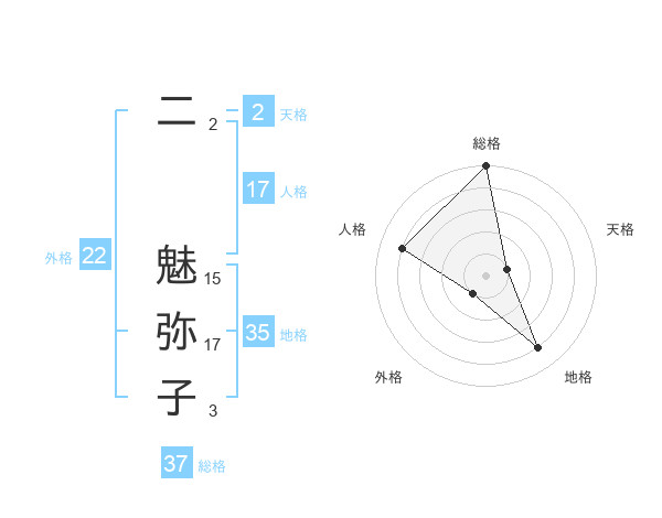 二 魅弥子さんを姓名の画数から五運を鑑定